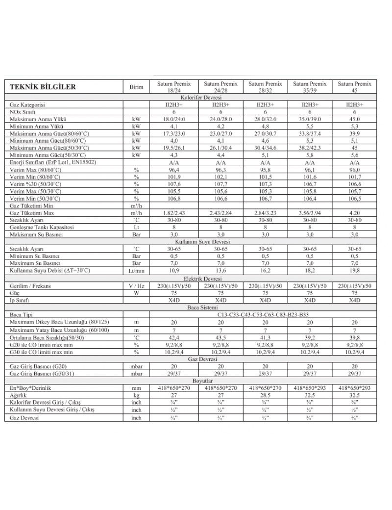 Baykan Saturn Premix 28/32 Kw Tam Yoğuşmalı Kombi