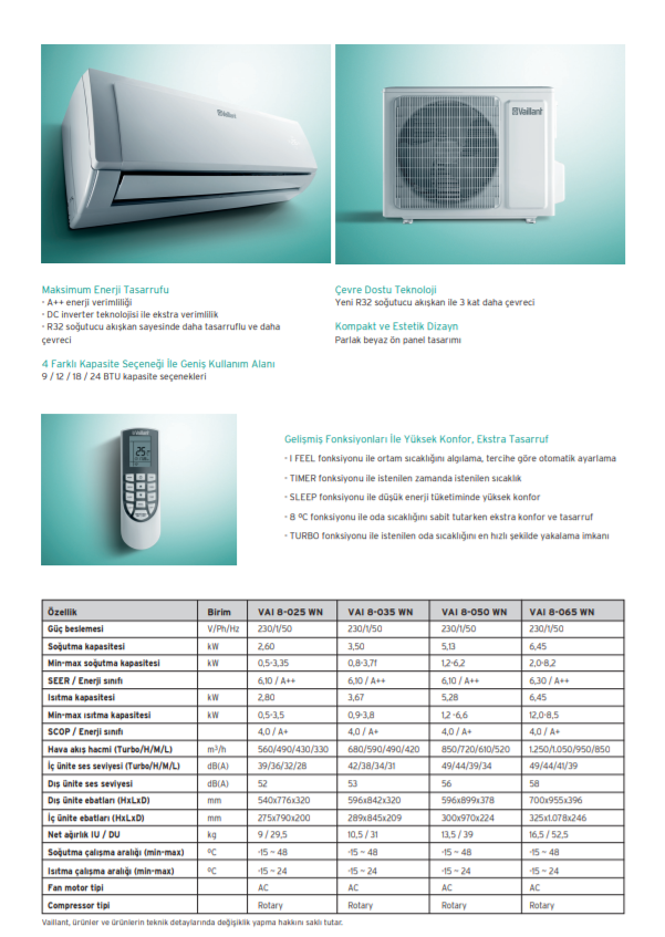 Vaillant VAI8-050 NW 18000 Btu İnverter Mono Split Klima