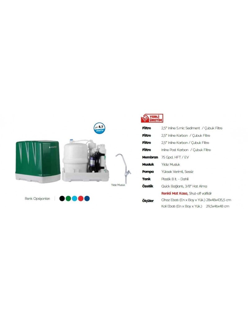 AquaTürk Elegance Pompalı Su Arıtma Cihazı (3-05-ELG)Yeşil