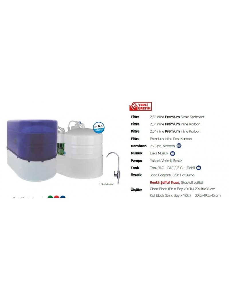 AquaTürk Safir Premium Pompalı Su Arıtma Cihazı (3-05-SFR-IN P)Mavi