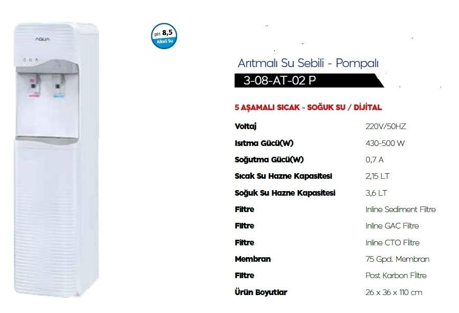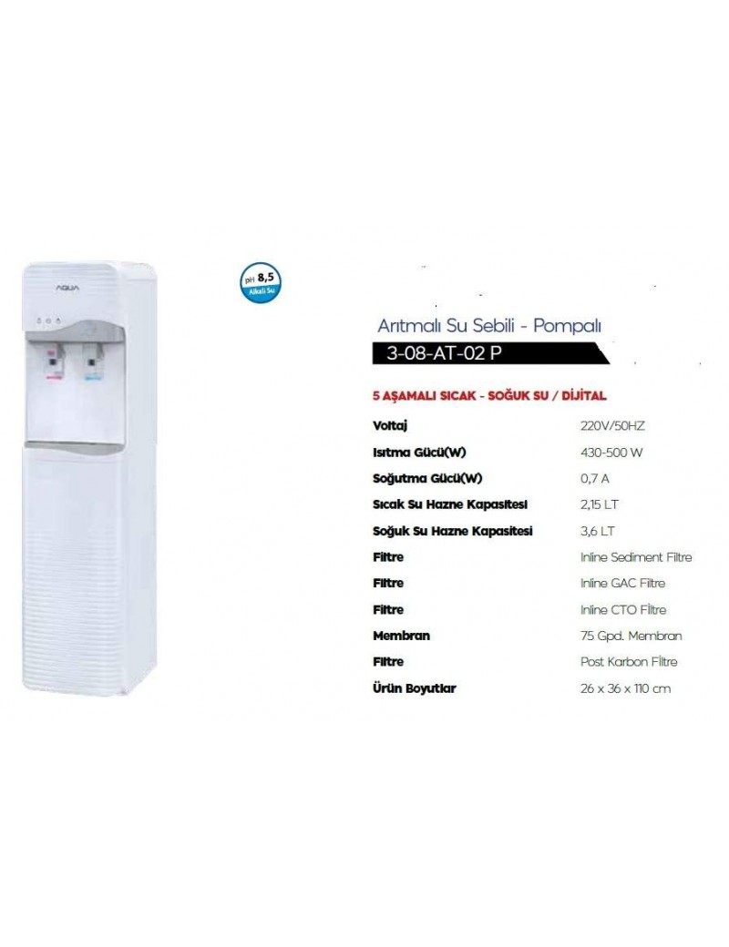 AquaTürk Arıtmalı Dijital Pompalı Su Sebili (3-08-AT-02 P)