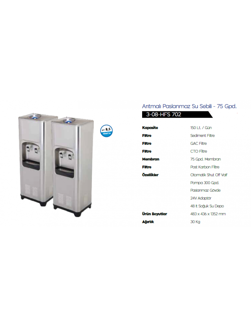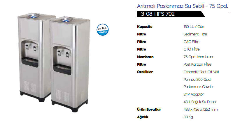 AquaTürk Arıtmalı Paslanmaz Su Sebili 75 Gpd (3-08-HFS 702)