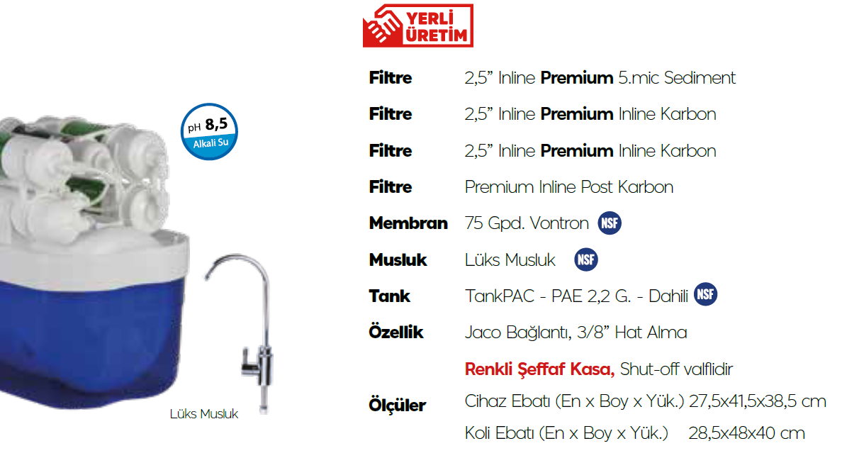 AquaTürk Stratos Premium Kompakt Su arıtma Cihazı(3-05-STR-IN)Mavi